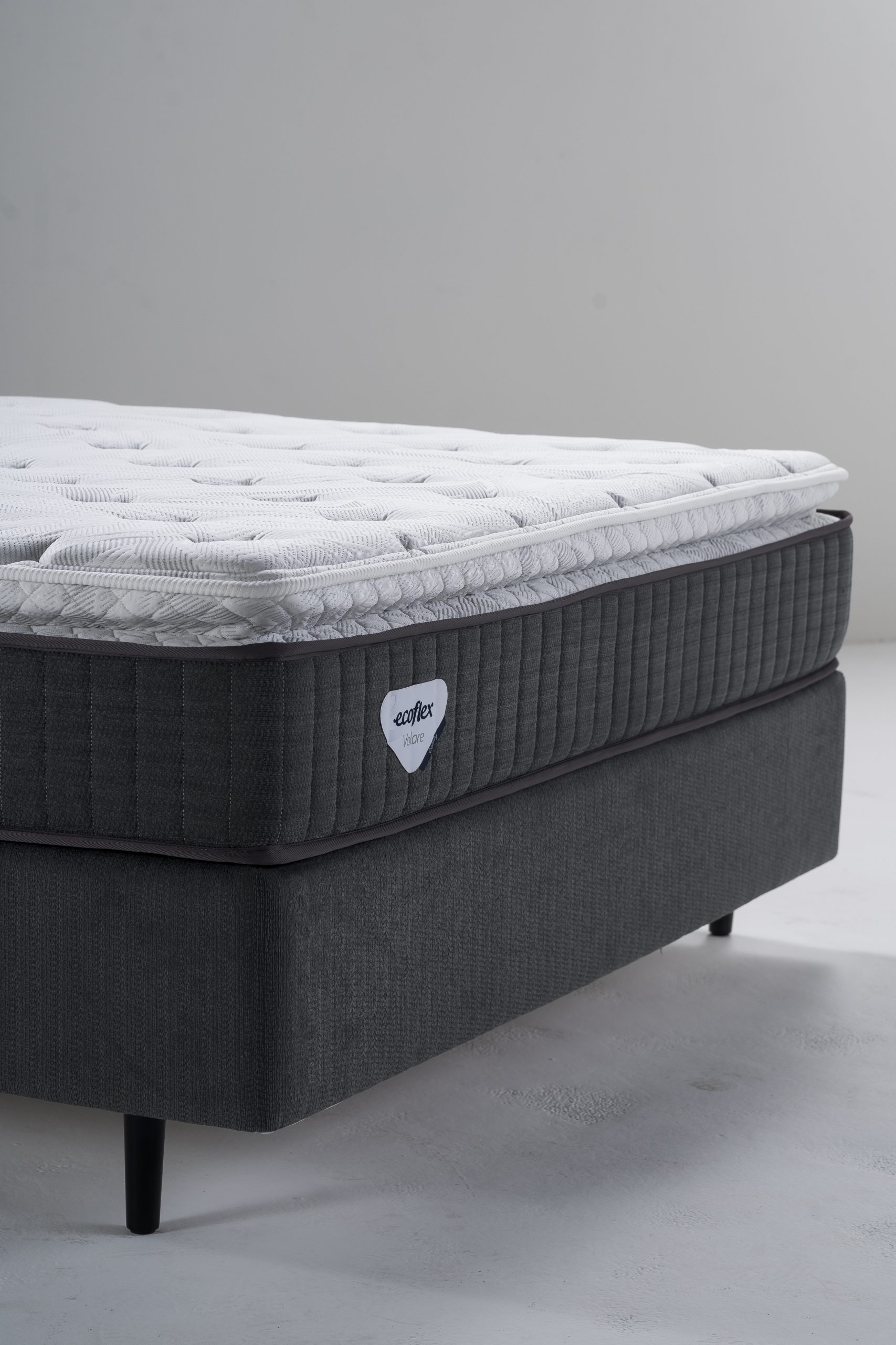 Internamente conta com uma camada de espuma Viscogel, agregando um toque a mais de conforto. A propriedade do gel auxilia no equilíbrio das temperaturas do corpo, garantindo um sono mais tranquilo e reparador.